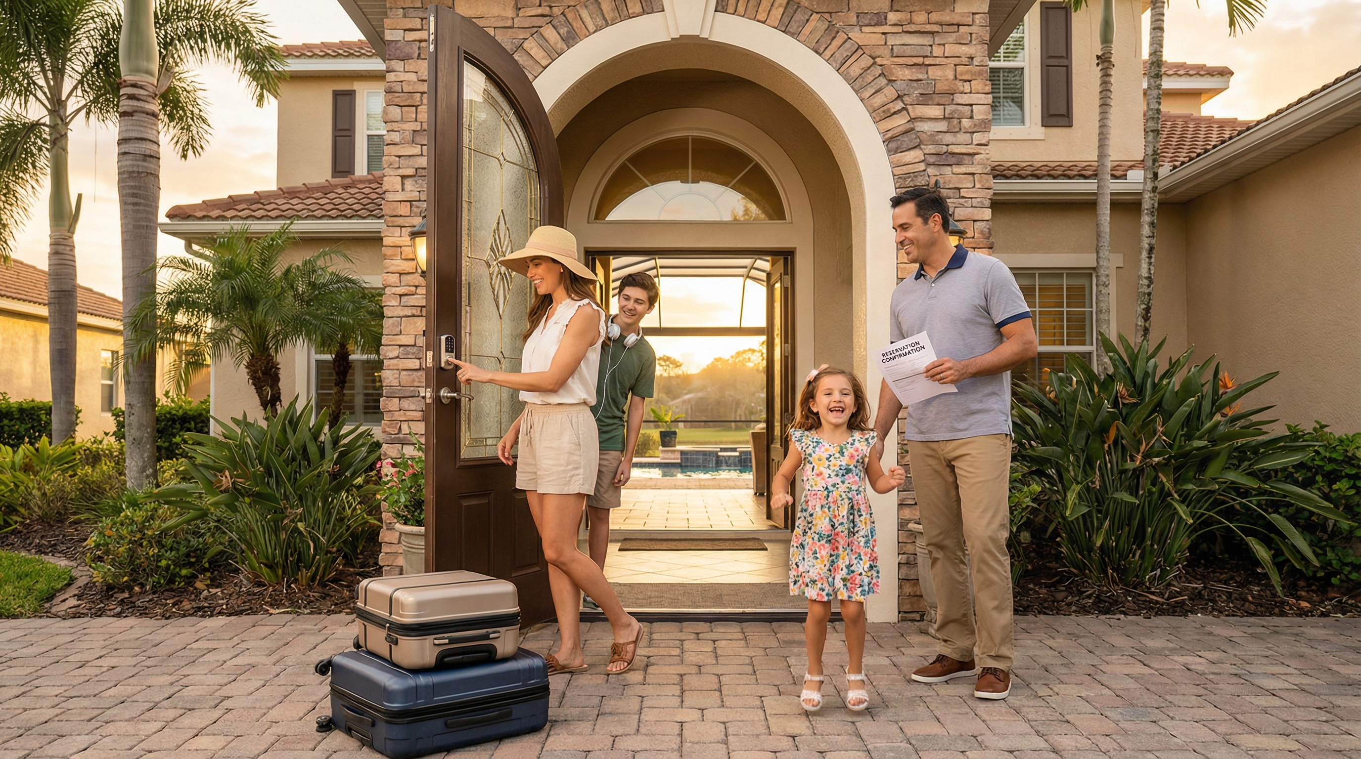 Com tudo aprovado, chega o momento mais aguardado! O acesso à casa geralmente se dá por fechadura eletrônica, usando o código secreto informado no material de boas-vindas, ou por retirada da chave em um local combinado. A maioria das casas de temporada de Orlando já utiliza sistema digital. Por isso, você não precisa encontrar um anfitrião pessoalmente ou esperar na fila.